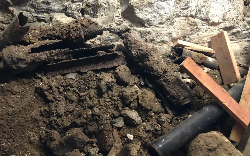 Crumbled Remains July 11, 2018 rose Remodelling As expected, the old soil pipe fell to pieces as it was removed. Here’s a pile of what’s left.