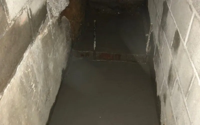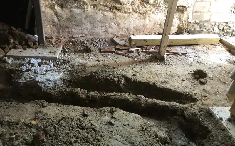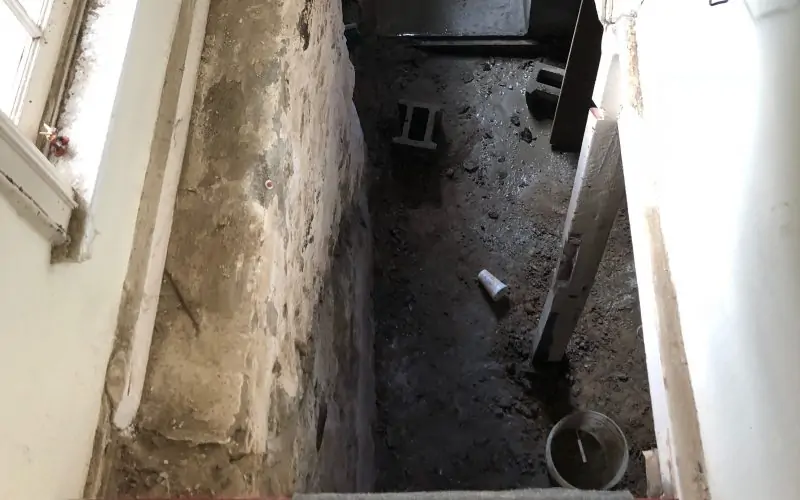 The soil pipe has been buried under the basement floor, possibly since the house was built in the 1880s. It has reached the end of its
