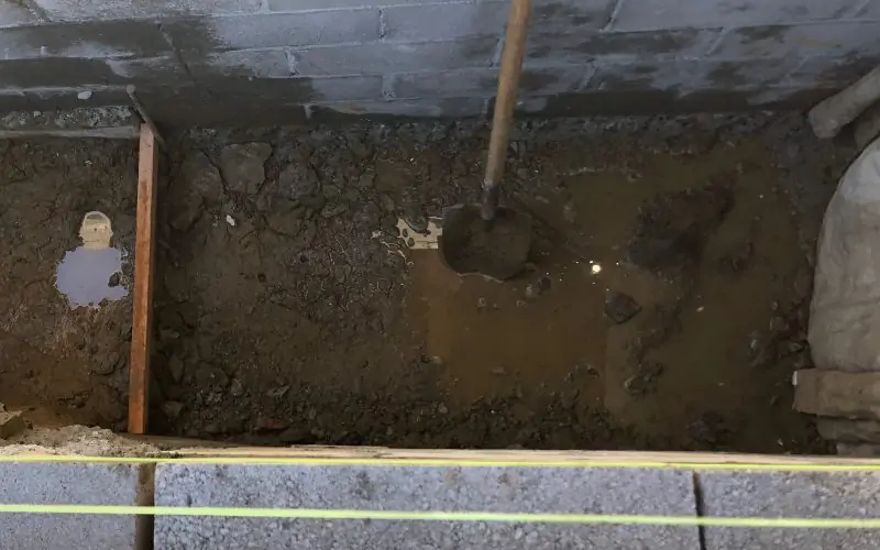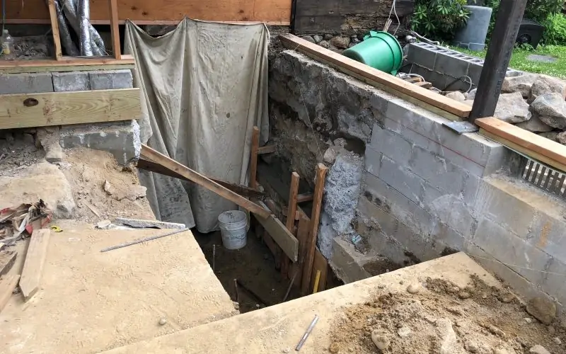 The bottom of the stairwell is currently a muddy puddle, but will soon be a nice flat concrete floor.