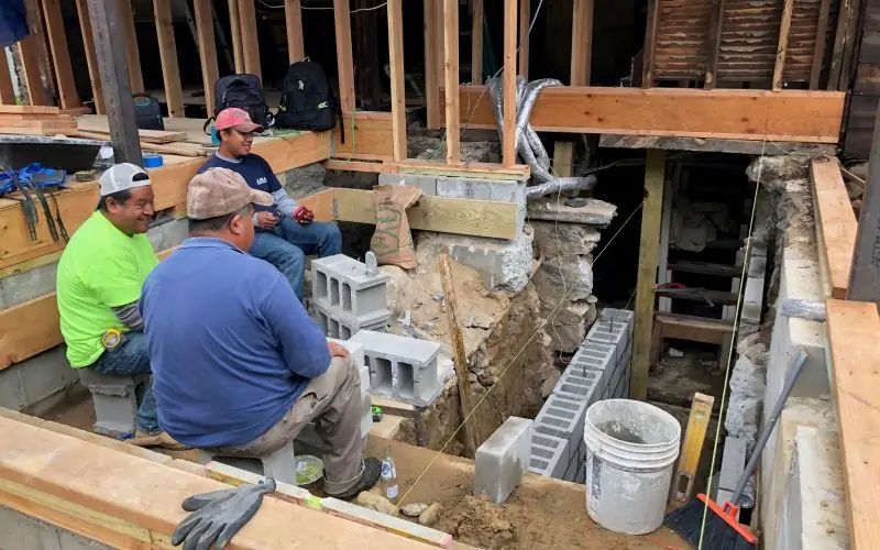 Jake and Shaggy are playing an active role in this project, alternately woofing at, or greeting, the team.