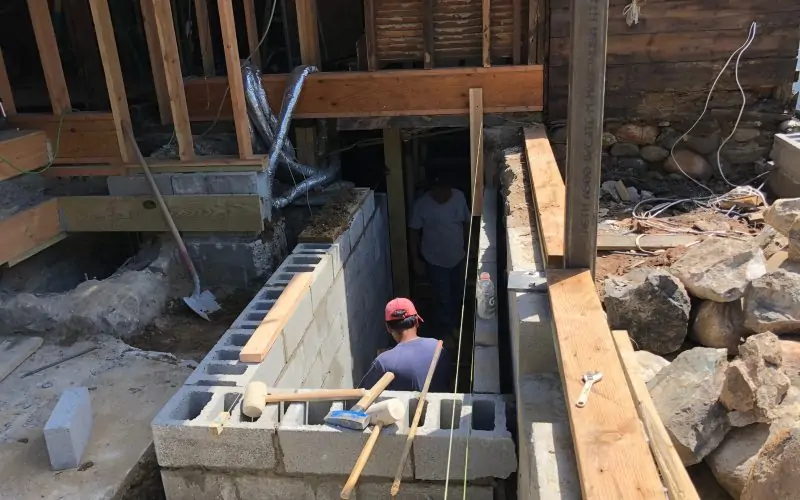 Construction of a nice square enclosure for the stairs is underway.