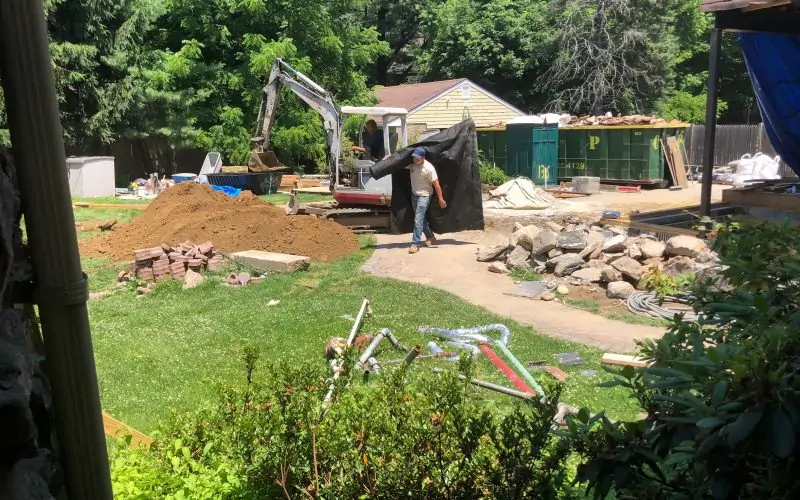 There is now a huge hole in the garden that will be lined with a porous membrane and filled with gravel to allow groundwater and runoff